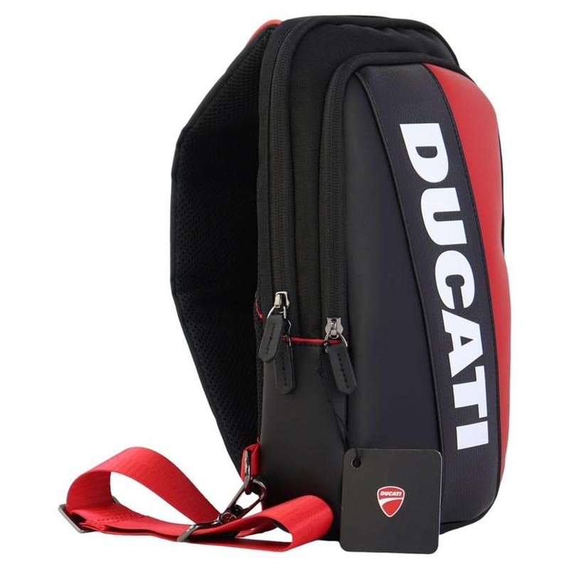 - Design desportivo da bolsa a tiracolo Ducati com logótipo e esquema de cores arrojados
