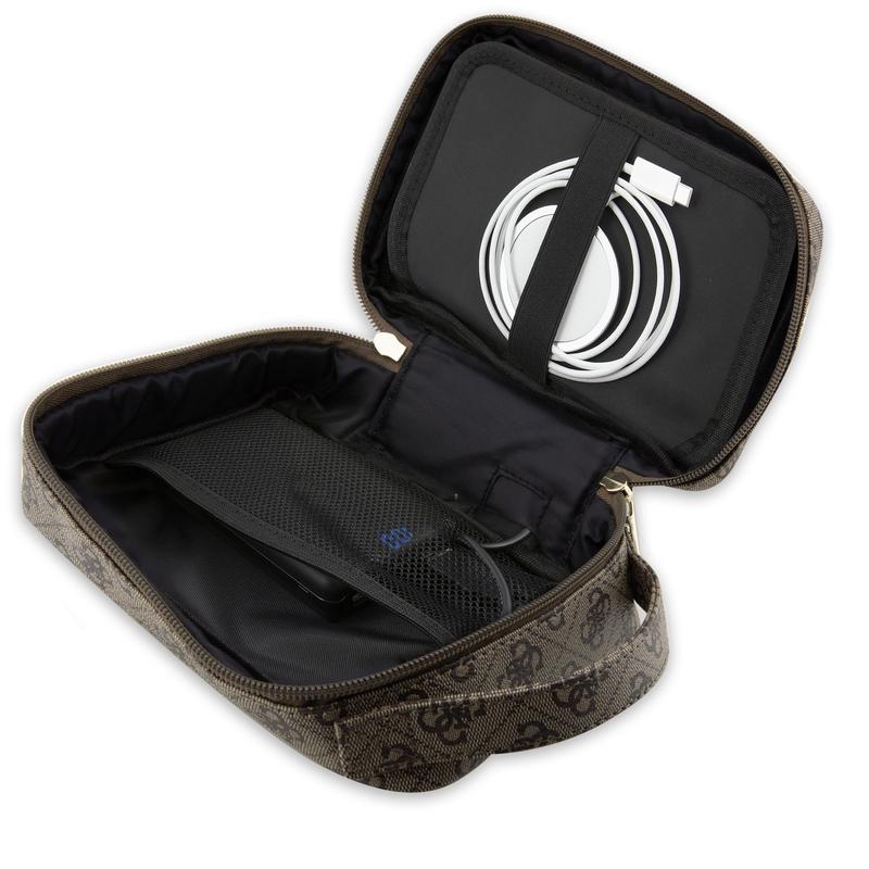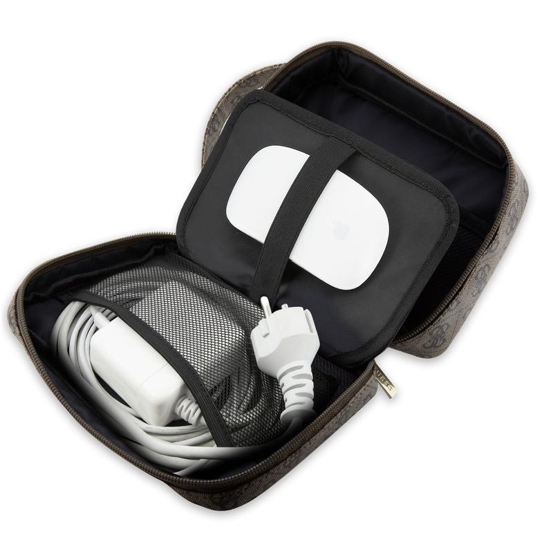 A bolsa Guess Travel Universal é a companheira de viagem ideal para quem procura uma forma elegante e prática de transportar todos os acessórios do seu telemóvel, tablet ou computador portátil. Fabricada em pele ECO de alta qualidade, a bolsa apresenta uma superfície finamente texturada adornada com o icónico logótipo Guess. No interior, bolsos bem concebidos proporcionam um amplo espaço para carregadores, power banks e cabos de alimentação. A caraterística de destaque desta bolsa é a saída USB-A, que lhe permite ligar uma powerbank e carregar o telemóvel diretamente a partir da lateral da bolsa. Com um design simples e um sentido de estilo, esta mala é perfeita para viajantes que valorizam a funcionalidade e a moda.