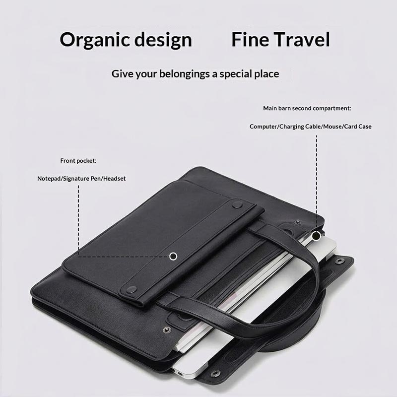 As malas tipo acordeão são populares porque facilitam a separação dos itens em secções estruturadas, em vez de empilhar tudo num único compartimento aberto. Isto pode melhorar tanto a organização como a proteção, especialmente ao transportar equipamentos eletrónicos juntamente com acessórios de uso diário. O couro PU também é amplamente utilizado em malas para portáteis, pois oferece uma aparência elegante e profissional, sendo ao mesmo tempo mais fácil de manter do que muitos materiais naturais.