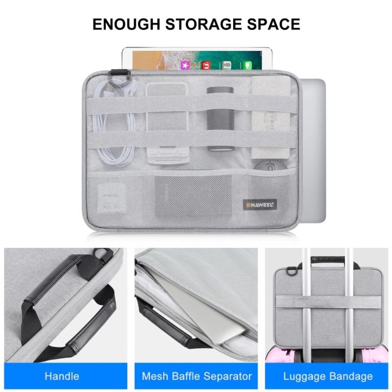 Transporte o seu portátil com segurança e viaje de forma mais inteligente com a bolsa HAWEEL HWL2168 para MacBook. Concebida para portáteis de 14 a 15 polegadas, esta capa protetora fina combina amortecimento multicamadas com um prático compartimento para acessórios, para que possa manter os seus itens essenciais organizados num só lugar. O exterior em poliéster impermeável ajuda a proteger contra chuva e respingos, enquanto o forro interno macio reduz o risco de arranhões durante o trajeto diário, uso no escritório e viagens.