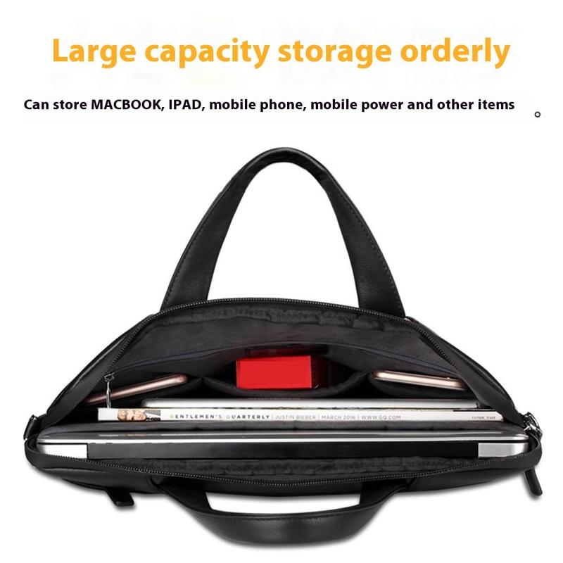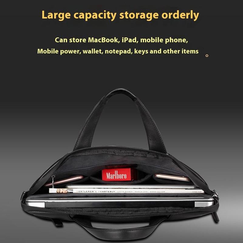 Dê ao seu computador portátil um tratamento de primeira classe com esta bolsa para portátil Qialino, fabricada em pele de vaca de grão superior, que resiste aos salpicos do dia a dia e tem um aspeto profissional sem esforço. Um forro de lã macia e algodão pérola amortece os dispositivos até 15 polegadas, e a alça de ombro amovível permite-lhe alternar entre uma pasta e um transporte transversal em segundos. Os vários bolsos interiores mantêm o telemóvel, a bateria e o bloco de notas bem organizados para uma viagem simplificada.