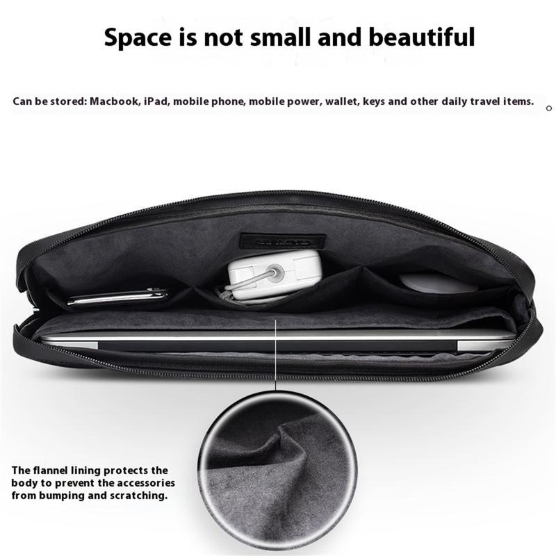 Viajar, deslocar-se ou ir para a aula com total tranquilidade: a bolsa para portátil de 15 polegadas da Qialino combina nano-têxtil repelente de água com acolchoamento amortecedor e uma alça de mão amovível. Com uma fina dimensão de 28 x 39,5 cm, cabe facilmente em mochilas, mas oferece espaço interior suficiente para um computador portátil, um tablet, um telemóvel e um carregador. Um fecho de correr oculto e um reforço em pele acrescentam uma camada extra de segurança e estilo no dia a dia.