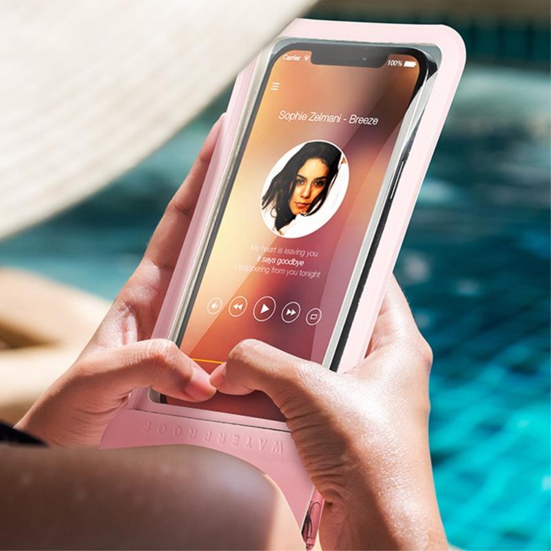 Quatro camadas à prova de água, bloqueio de fita de selagem dupla com fita mágica dupla, totalmente selada para proteger o telemóvel da água