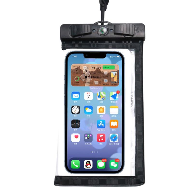 A bolsa para telemóvel à prova de água é feita de material ABS+PVC, elegante e prática
