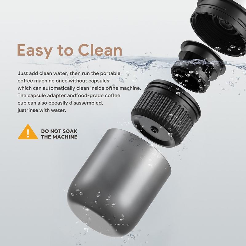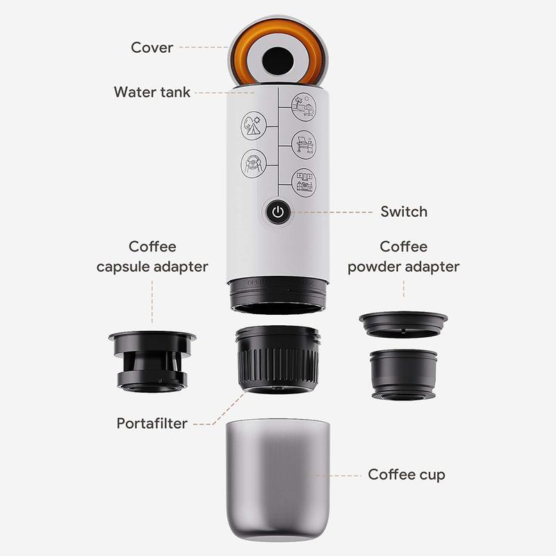 - Design compacto e leve: Pesando apenas 600g e medindo 7,5x7,5x22,5cm, esta cafeteira portátil é fácil de transportar, tornando-a ideal para viagens, uso no carro e actividades ao ar livre.
