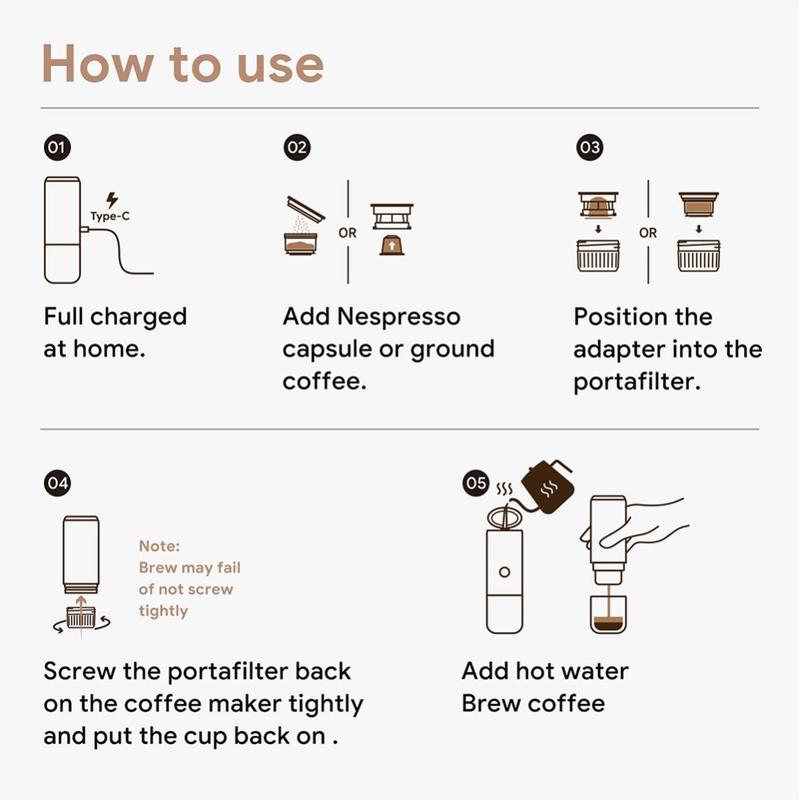 - Conveniência: O seu design portátil e sem fios permite-lhe desfrutar de um café de alta qualidade a qualquer hora e em qualquer lugar.