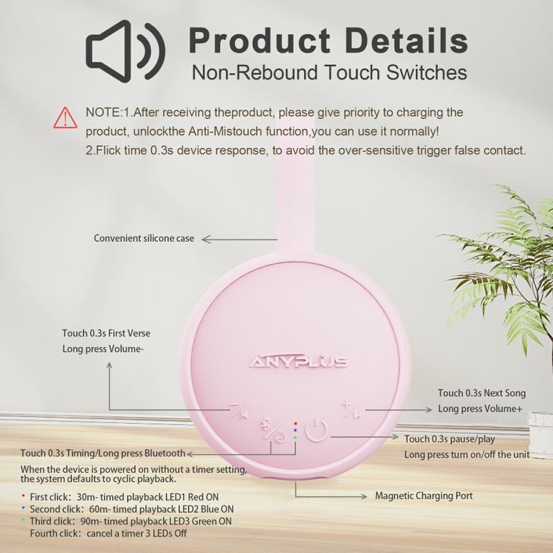 AnyPlus Máquina de ruído branco portátil para o sono do bebé / Máquina de som para ajudar a dormir com altifalante Bluetooth