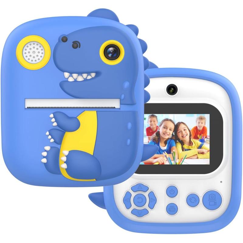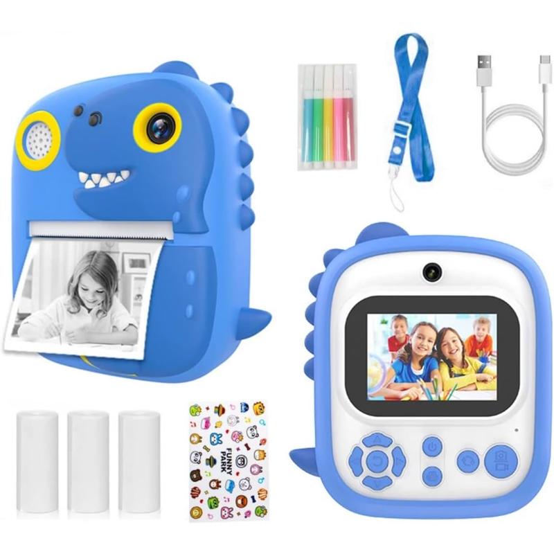 • Máquina fotográfica infantil com impressão instantânea YYTech P3 T-Rex - 1080P, lente dupla de 2,4", flash