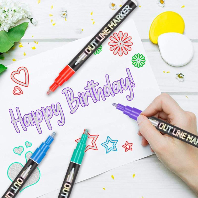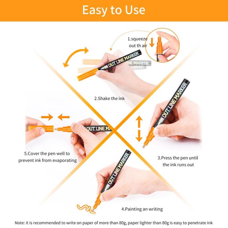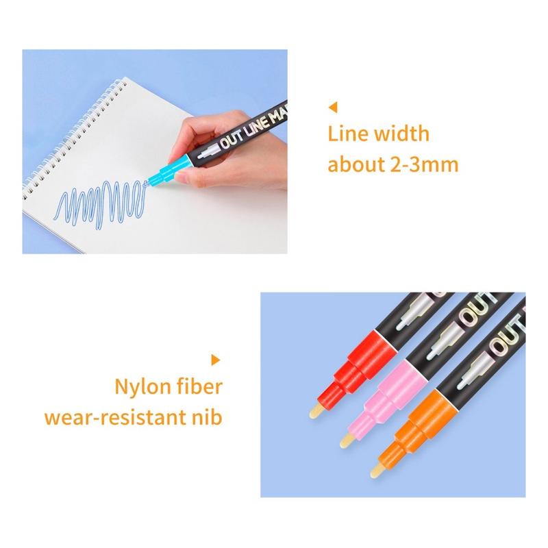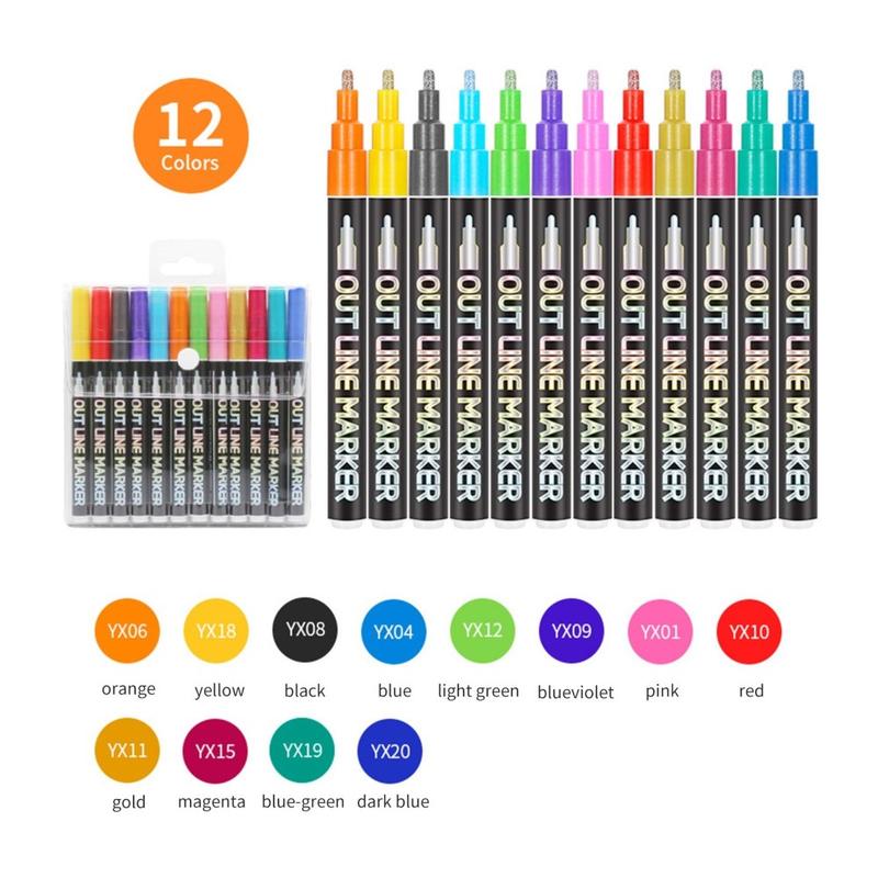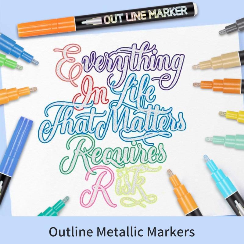 Marcadores de contorno metálicos para desenhar e escrever - 12 unidades
