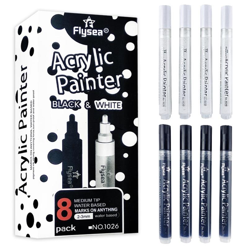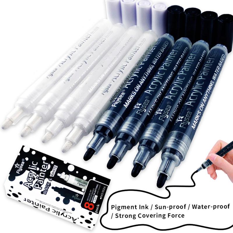 Caixa de 8 canetas: Convenientemente embalada com uma mistura igual de marcadores pretos e brancos