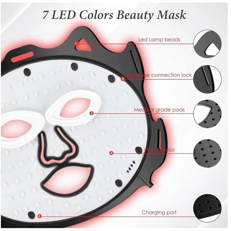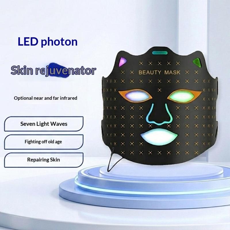 SP-1103A Máscara facial para terapia de luz LED de 7 cores - Máscara de silicone sem fios para cuidados da pele com controlador digital