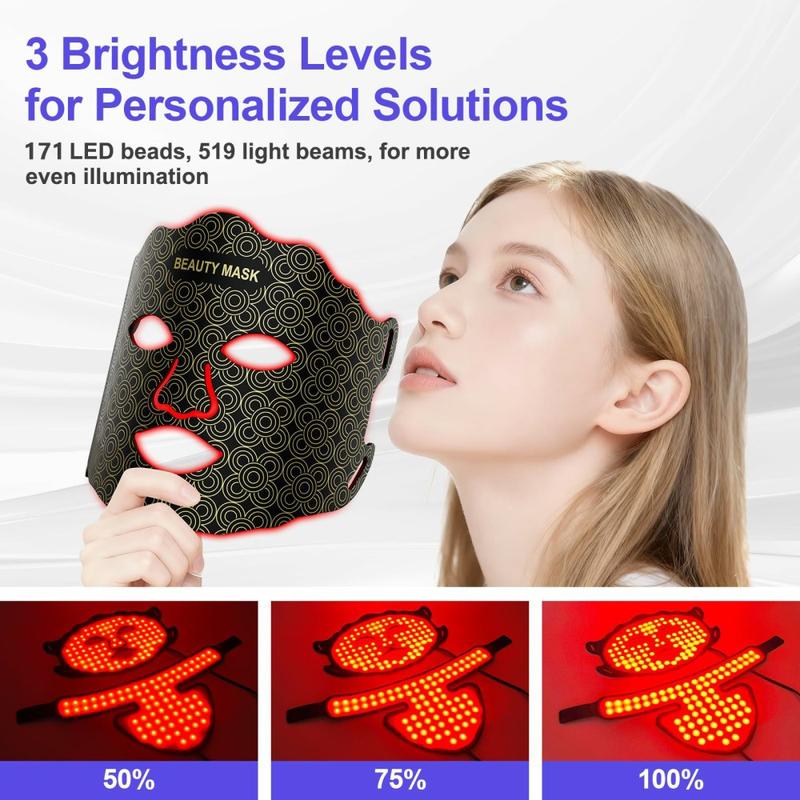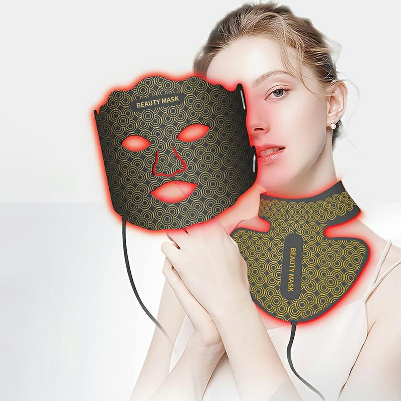 Máscara de beleza com terapia de luz LED de 7 cores – Dispositivo de rejuvenescimento da pele do rosto e pescoço com 3 níveis de intensidade
