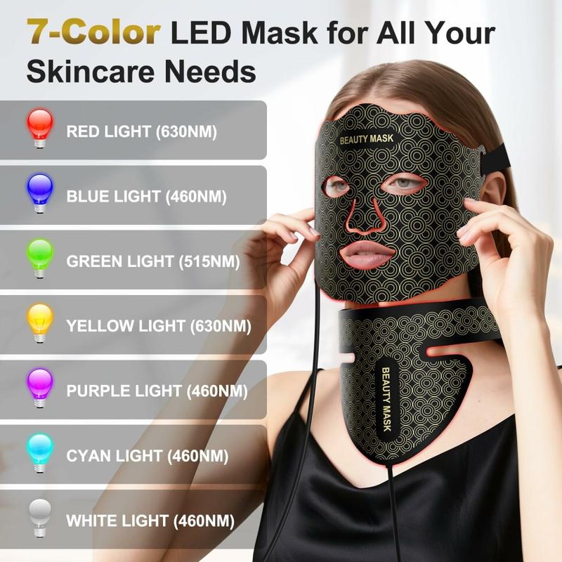 Esta máscara de beleza LED de 7 cores oferece terapia de luz profissional em casa com intensidade ajustável, cobertura total do rosto e pescoço e recursos de segurança fáceis de usar, tornando-a um excelente complemento para as rotinas modernas de cuidados com a pele.