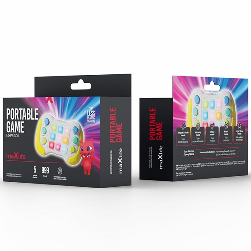 Combinando entretenimento com aprendizagem, o Maxlife MXPS-300 oferece mais do que apenas brincar - melhora a concentração, aguça os reflexos e proporciona uma fuga relaxante num design compacto e fácil de viajar.