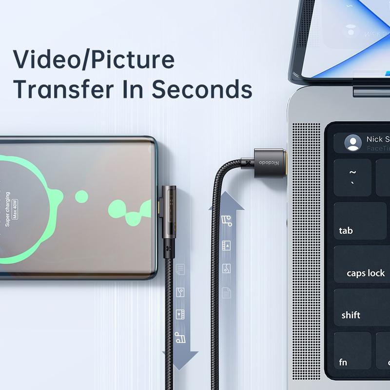 MCDODO CA-3380 MDD 1,2 m USB-A para Type-C Cabo de dados com cotovelo de 90 graus 6A Carregamento rápido Cabo transparente