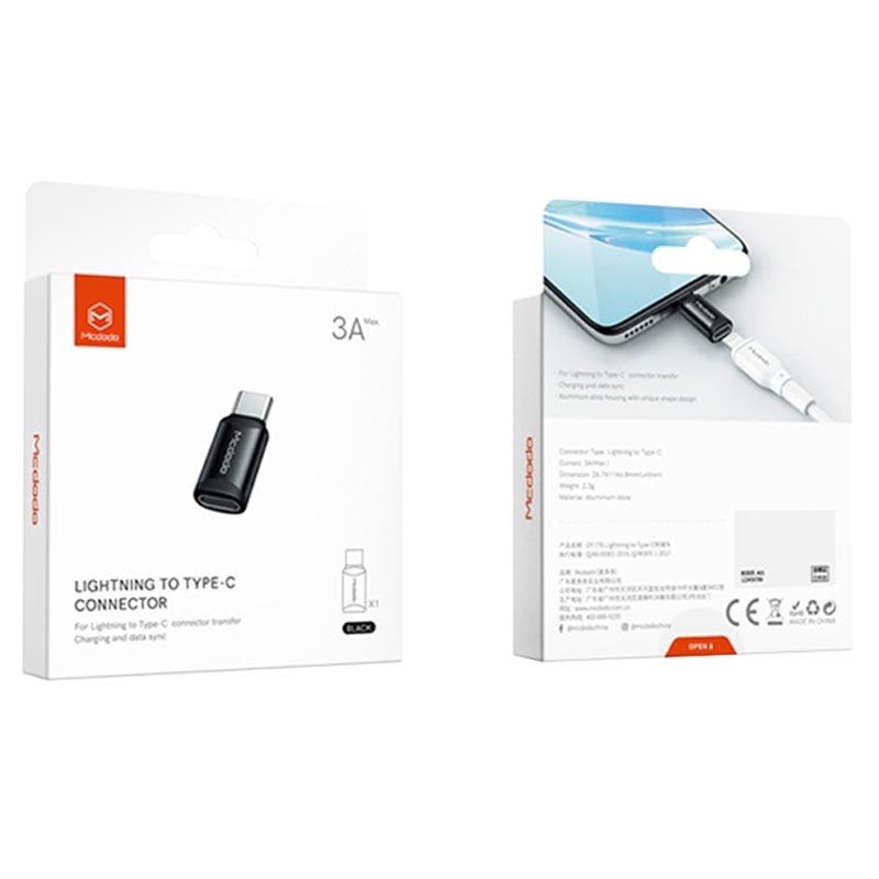 Mcdodo OT-7700 é o adaptador que permite conectar o cabo Lightning a dispositivos USB-C. Ele suporta Fast Charge 3A, para que você possa recarregar o dispositivo rapidamente e também transferir dados. Além disso, possui um resistor de identificação integrado, corresponde de forma inteligente à corrente segura e protege seu dispositivo.