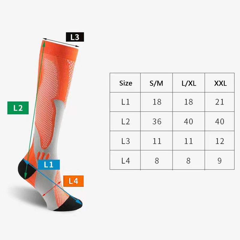 As meias de compressão são feitas de material de alta qualidade, respiráveis, confortáveis, não oprimem os pés, têm muita elasticidade e uma longa vida útil