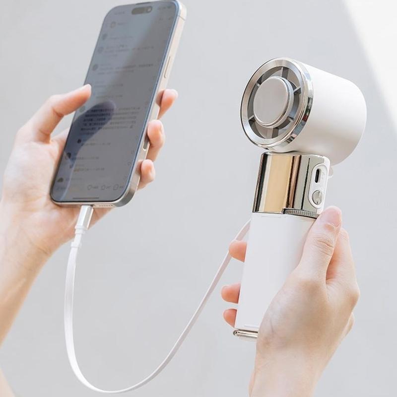MF119 Ventoinha de mão de 100 velocidades com cabo USB-C retrátil e arrefecimento de semicondutores
