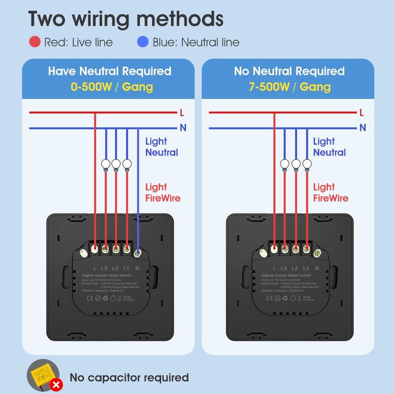 MG-KG126 Interruptor Inteligente de Radar Zigbee / Interruptor de Parede com Sensor Humano, Controlo Remoto Ativado por Tuya - 3 Gang, 1 Via