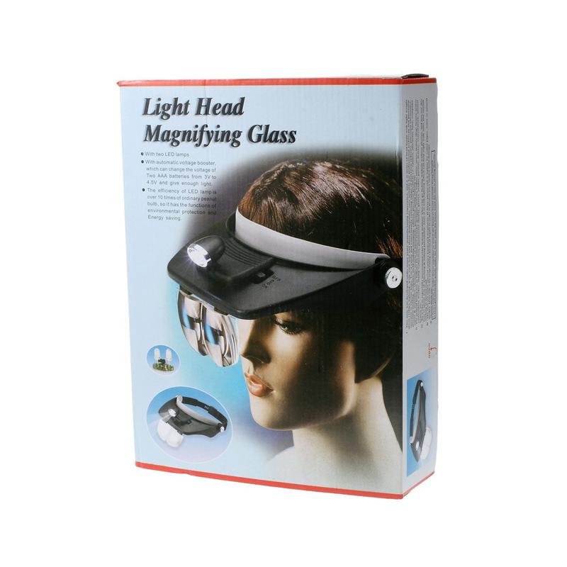 - 1x Lupa de fita para a cabeça com 2 LEDs