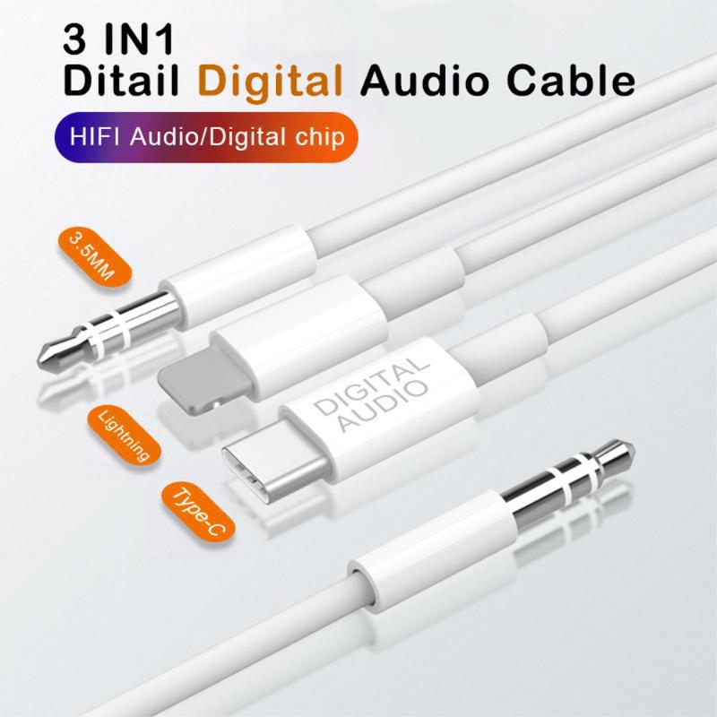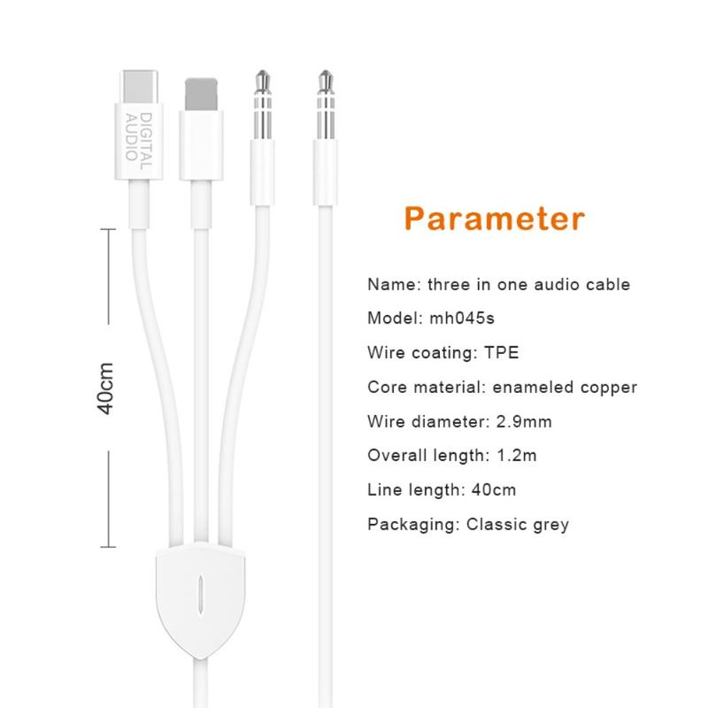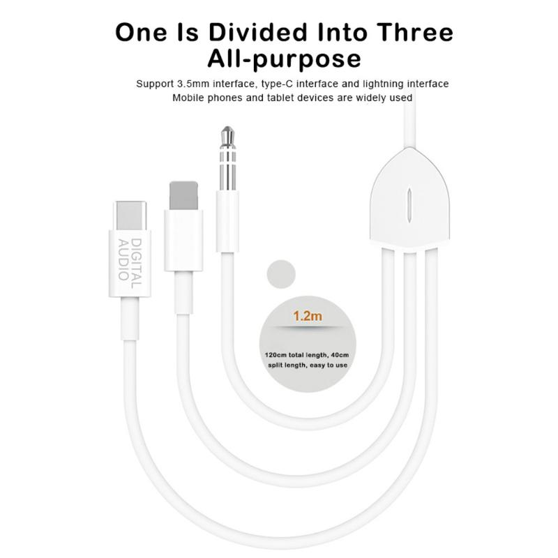 MH045S Cabo de áudio para automóvel 3 em 1 - USB-C, Lightning, 3.5mm - Adaptador estéreo universal para smartphones e tablets