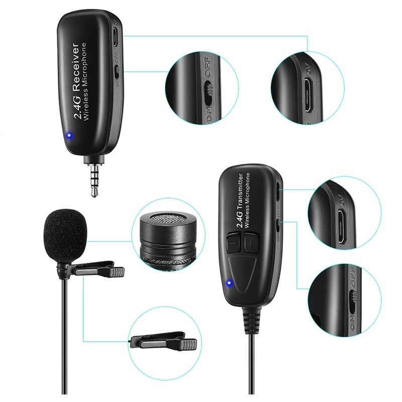 - Microfone de lapela sem fios G18L com recetor e transmissor