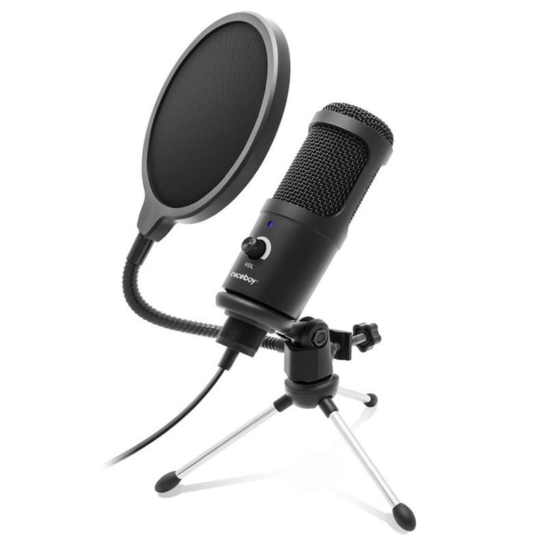 Microfone Condensador de Voz Niceboy com Tripé e Filtro Pop