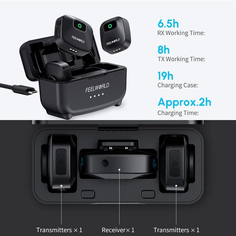 Com funcionamento plug-and-play, emparelhamento automático, modos estéreo e mono e compatibilidade com telemóveis, câmaras e computadores, este kit de microfone é uma escolha prática para utilizadores que pretendem gravações flexíveis em vários dispositivos. O estojo de carregamento incluído também ajuda a manter o sistema organizado, protegido e pronto a utilizar ao longo do dia.