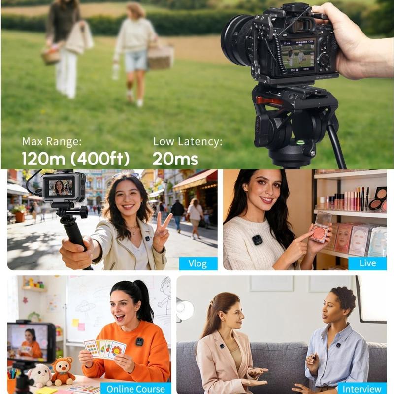 Os sistemas de microfones de lapela sem fios são populares porque permitem que os oradores se movimentem com mais liberdade, mantendo o áudio mais nítido do que um microfone integrado num telemóvel ou numa câmara. Os kits com transmissores duplos são especialmente úteis para entrevistas e gravações colaborativas, pois ambas as vozes podem ser captadas de forma mais equilibrada. Os sistemas com estojo de carregamento também acrescentam valor prático, facilitando o transporte e ajudando os criadores a manter os microfones carregados entre as gravações.