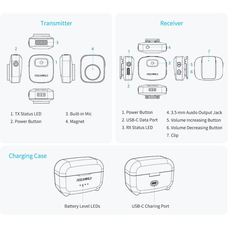 Se procura um sistema de microfone sem fios com 2 transmissores, ampla compatibilidade com dispositivos, design compacto e vestível e a conveniência prática de um estojo de carregamento, o FEELWORLD LM1 é uma excelente escolha. Proporciona-lhe um áudio mais nítido no dia a dia, maior flexibilidade de gravação e uma configuração de som mais profissional para a criação de conteúdos.