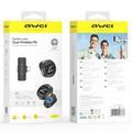 Microfone de lapela sem fios Awei MK3 com dois ímanes, receptor Type-C e alcance de 25 m