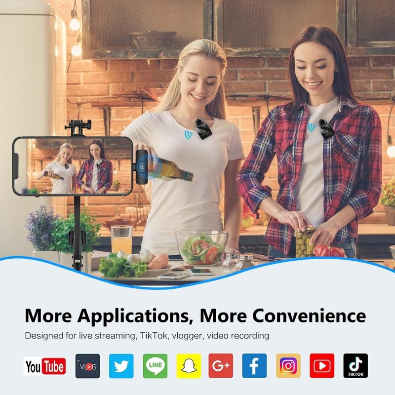 Os sistemas de microfone de lapela sem fios duplos são especialmente úteis porque permitem que duas pessoas falem naturalmente sem partilhar um único microfone ou permanecerem perto de uma única fonte de gravação. Isto muitas vezes torna as conversas mais nítidas e profissionais. Os modelos sem fios também são amplamente preferidos para conteúdos móveis porque simplificam a configuração, reduzem os cabos visíveis e permitem maior liberdade durante a filmagem.