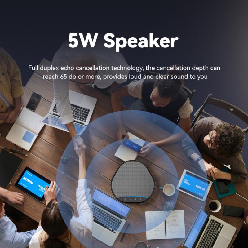 Qualidade de chamada superior: incorpora vários algoritmos, incluindo chamadas de 360°, comunicação full-duplex, cancelamento de eco incorporado, supressão de ruído e melhoramento de voz, garantindo um áudio cristalino durante as conversas