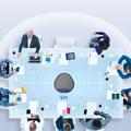 Inclui um conjunto de microfones duplos com captação de áudio de 360° ideal para salas de conferência de pequena e média dimensão até 20 metros quadrados