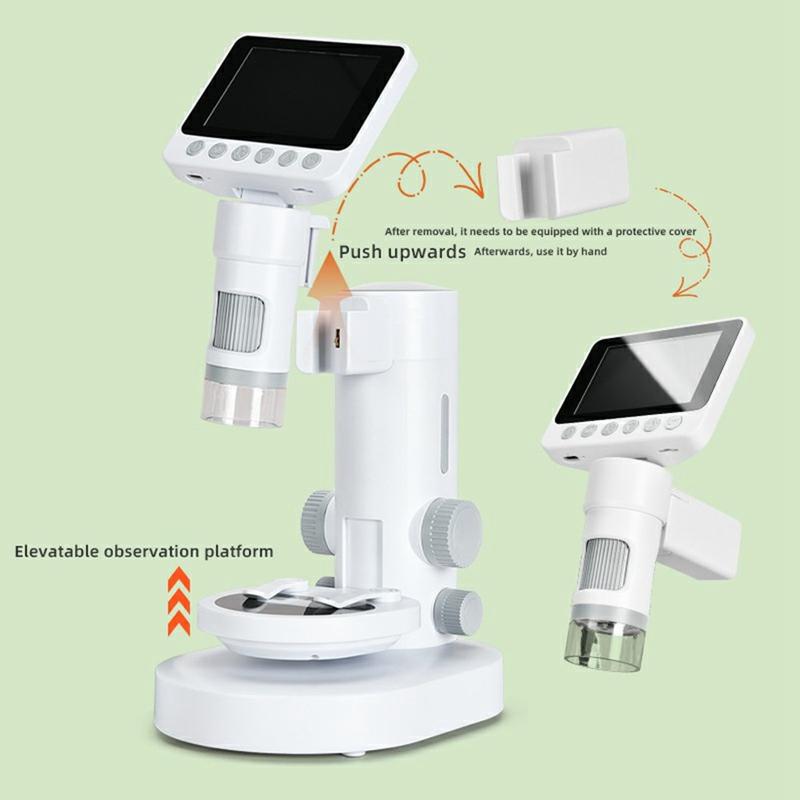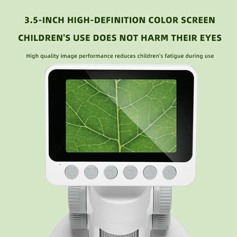 Microscópio digital para crianças 1000X / Microscópio de mão e de secretária 2 em 1 com ecrã HD de 3,5 polegadas e conjunto de lâminas