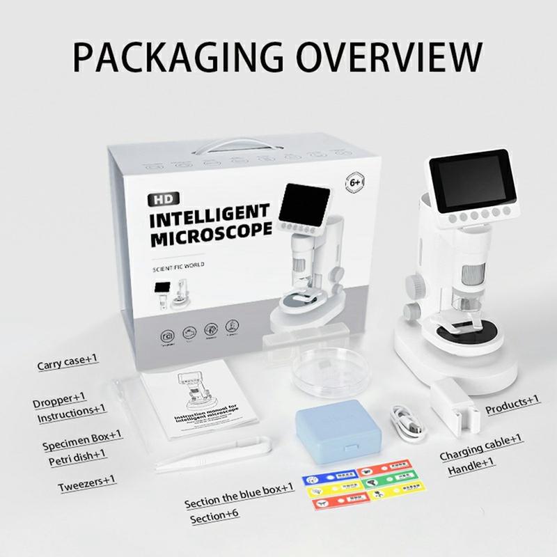 Este microscópio combina educação, facilidade de utilização e diversão interactiva. Com um ecrã grande, iluminação segura e acessórios incluídos, oferece um kit de aprendizagem completo que incentiva a curiosidade e a descoberta prática.