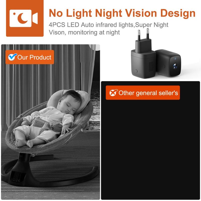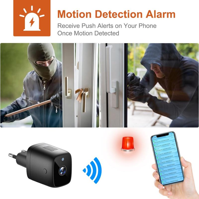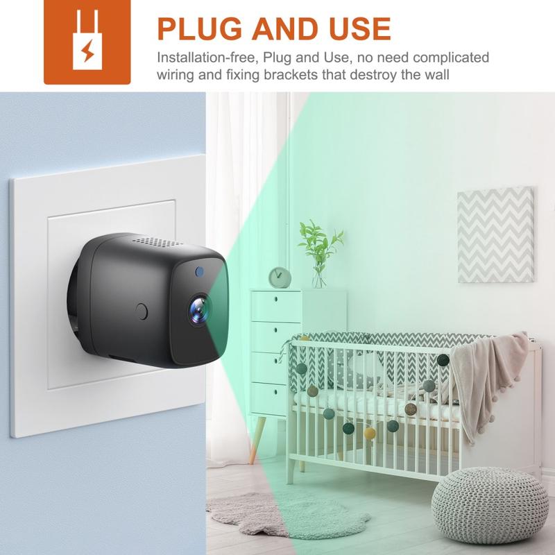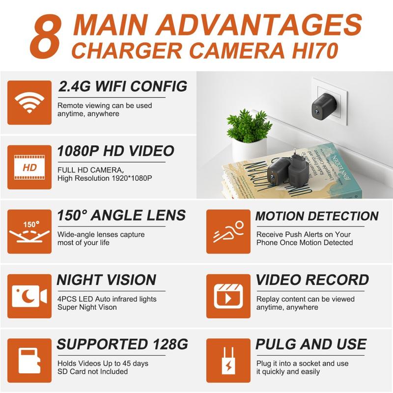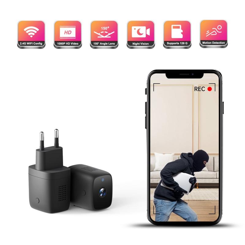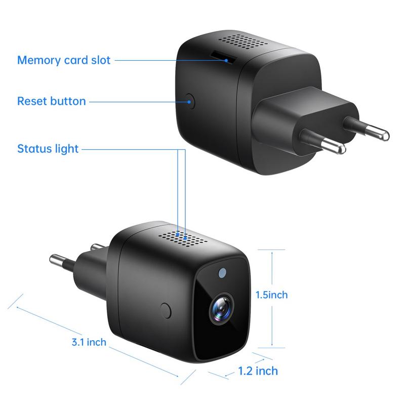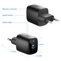 Mini câmara remota WiFi com visão nocturna e deteção de movimento com carregador de parede HI70