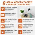 Câmara com carregador USB: Mini câmara remota WiFi do carregador, 4pcs LED IR lights+infravermelhos automáticos, lente grande angular de 150 graus, alta resolução 4k/2k/1080p/720p. Suporte para gravação de vídeo, monitorização de áudio, suporte para visualização no android, ios, para iPad. Plug and play