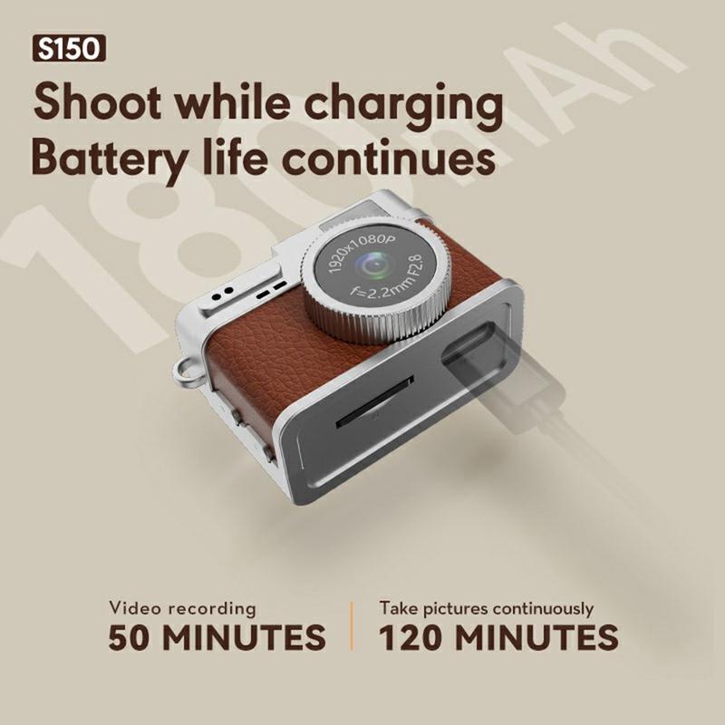 • S150 Retro Mini Camera - Câmara pendente de 1080p com ecrã IPS de 0,96 polegadas, gravação em loop