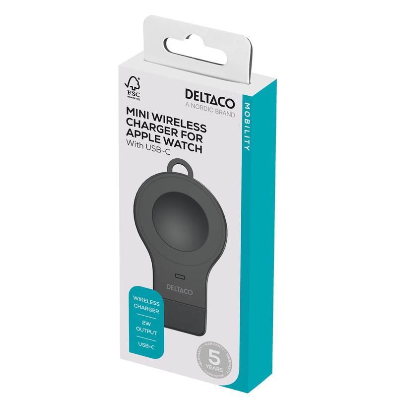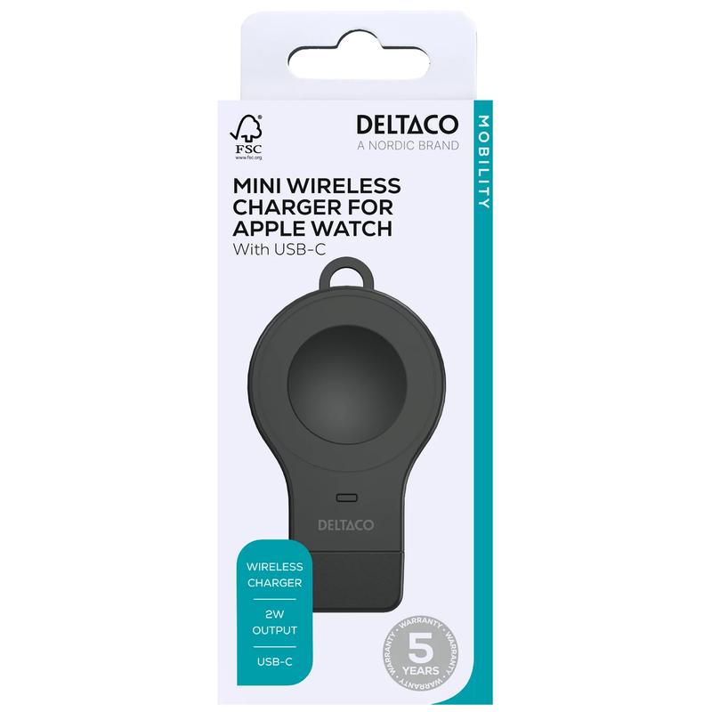 Mini carregador sem fios Deltaco AWC-102 para Apple Watch - USB-C - 2W