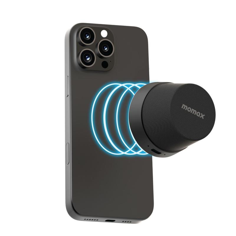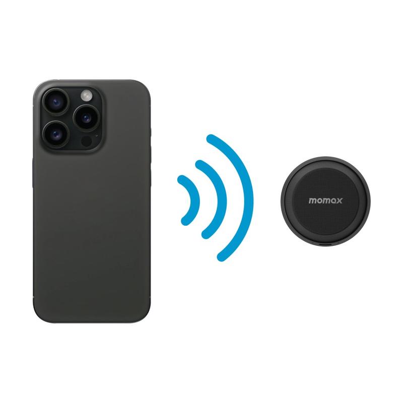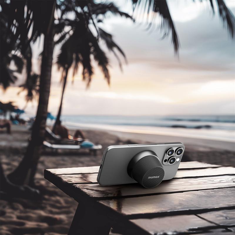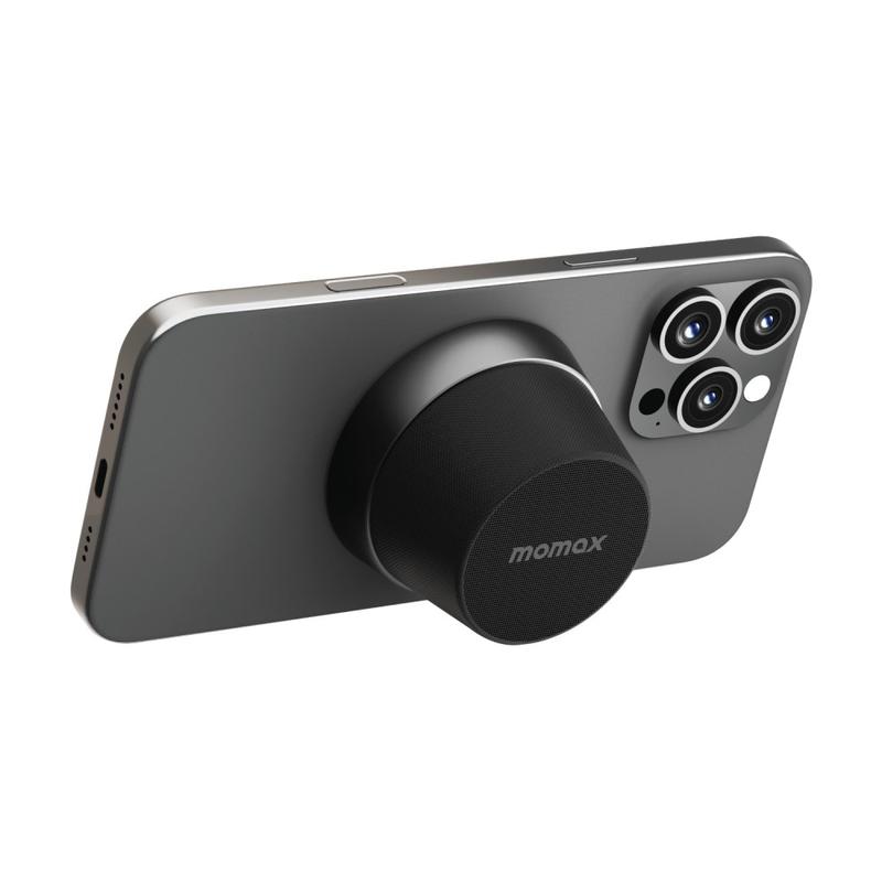 Mini coluna Bluetooth magnética e suporte para telemóvel Momax 1-Vibe Go BS6, som 360° e resistência à água IPX6