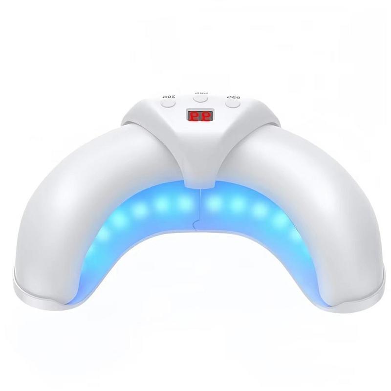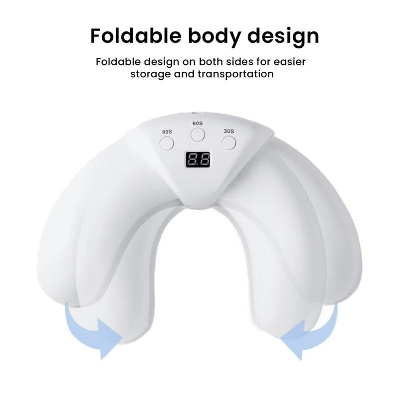 Crie resultados perfeitos, ao estilo de um salão de beleza, em casa com este mini candeeiro de unhas dobrável em forma de meia-lua, concebido para unhas das mãos e dos pés. A sua construção compacta e economizadora de espaço dobra-se para facilitar a arrumação e a deslocação, enquanto a abertura ajustável ajuda a adaptar-se confortavelmente a diferentes tamanhos de mãos. A área de cura direcionada foi concebida para ajudar a curar o verniz sem expor desnecessariamente as costas da mão. Com 22 LEDs (18 azuis + 4 vermelhos) e um ecrã LCD nítido, pode acompanhar a sua sessão num relance e escolher entre três definições de temporizador para um cuidado controlado e consistente das unhas. A alimentação por USB (DC 5V) facilita a sua utilização em praticamente qualquer lugar - numa secretária, no sofá ou em viagem.