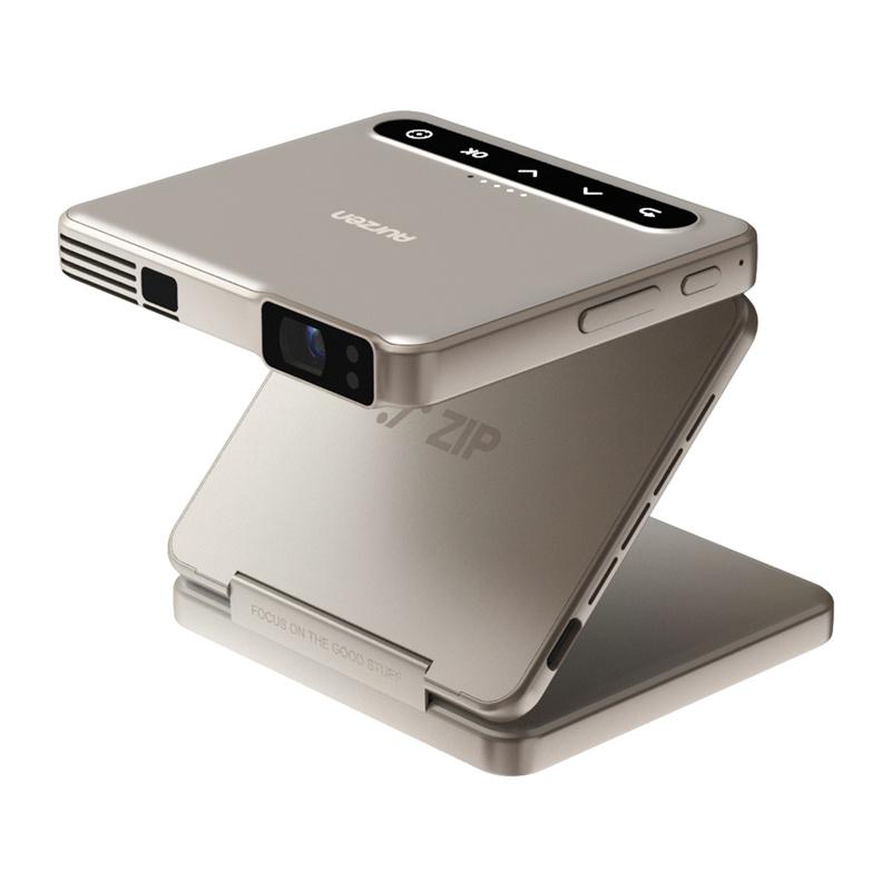 Mini projetor portátil Aurzen ZIP Tri-Fold - DLP 720p, 100 ANSI Lumens, bateria de 5000 mAh, ecrã inteiro vertical, espelhamento instantâneo