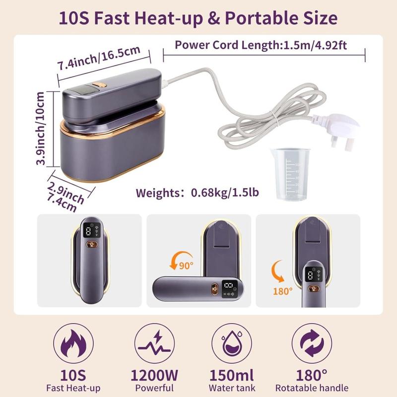 Mini vaporizador de mão para roupa com ecrã LED e 3 níveis de vapor - 1200W, ficha UE, depósito de 150 ml