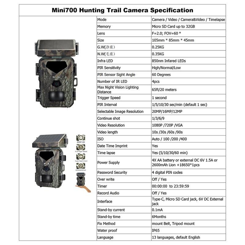 Mini700 20MP 1080p Infrared Trail Camera / Visão Nocturna Vida Selvagem e Caça