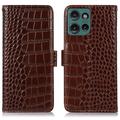 Bolsa de Pele Tipo Carteira Crocodile com RFID para Motorola Edge 50 Neo