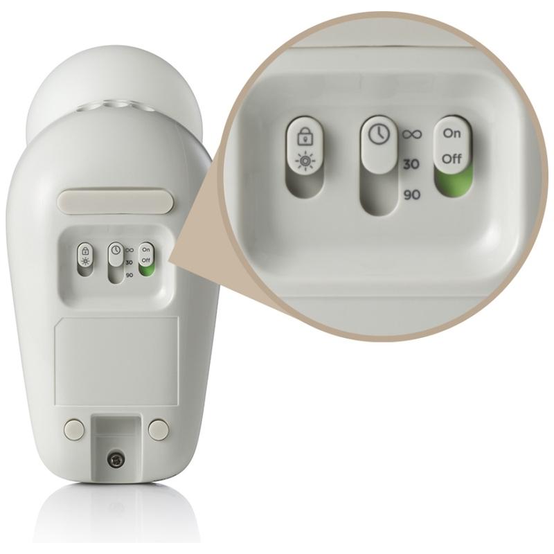 - Cinco níveis de brilho permitem ajustar a luz para se adequar às sestas, à hora de dormir e à utilização noturna.
