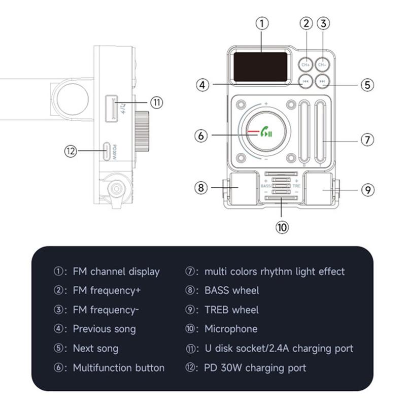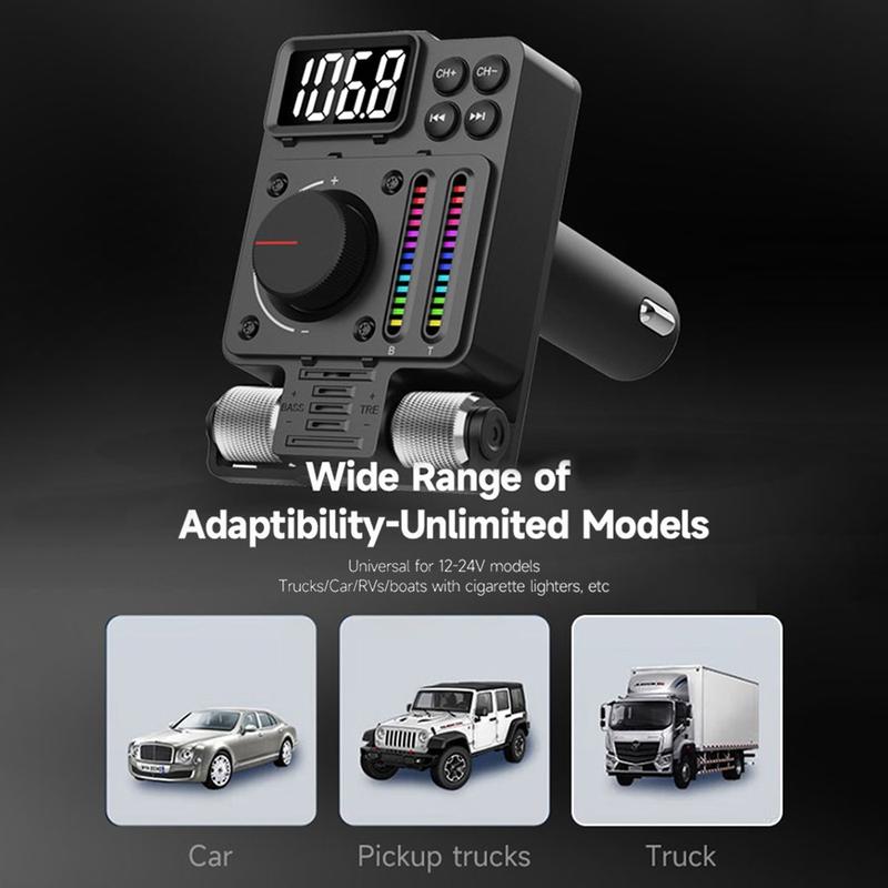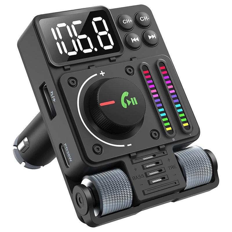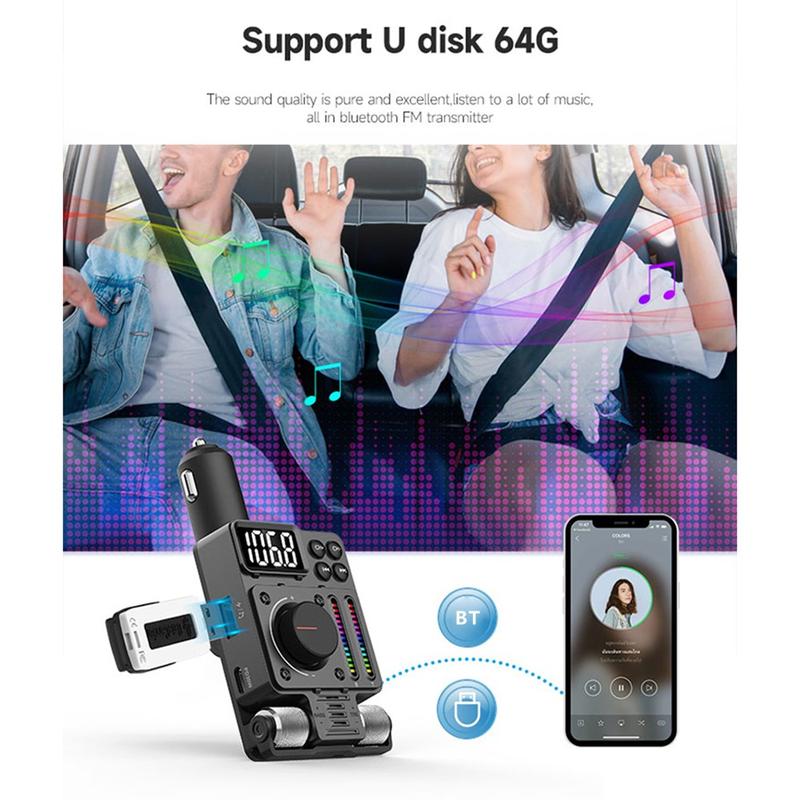 MT01 Adaptador Bluetooth para automóvel com luz ambiente Transmissor FM Leitor de música MP3 Tipo C + Carregador USB para automóvel