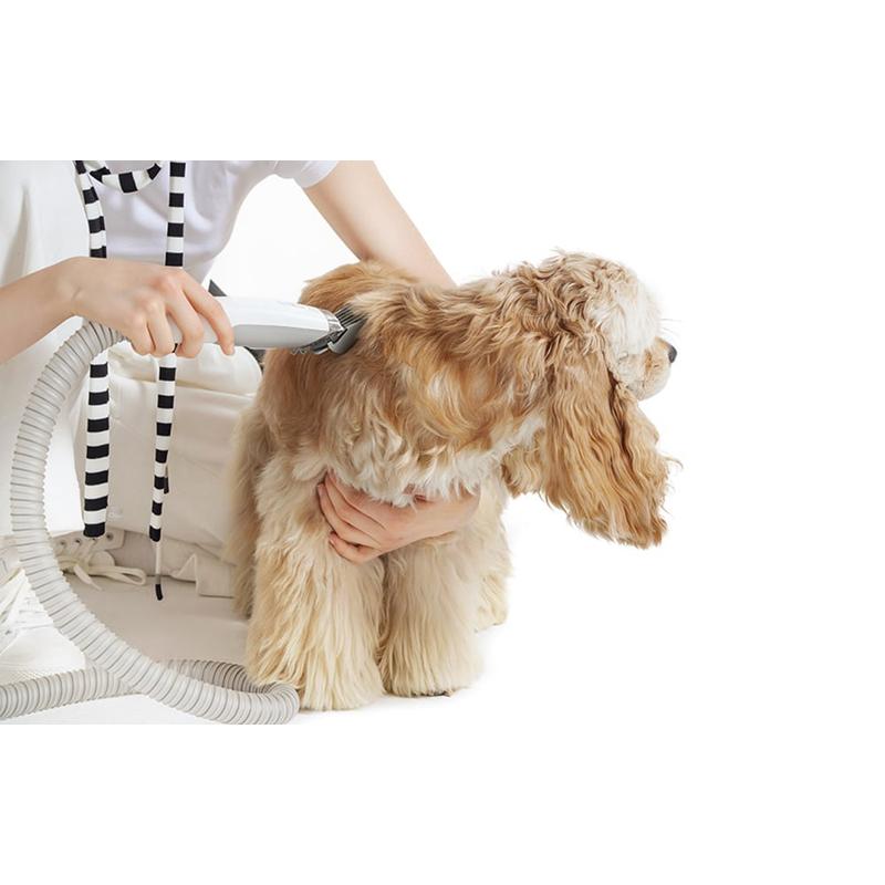 - Sucção potente com proteção de segurança: Equipado com uma potência de sucção de 350 W para recolher imediatamente os pêlos cortados, garantindo segurança e precisão durante o corte.