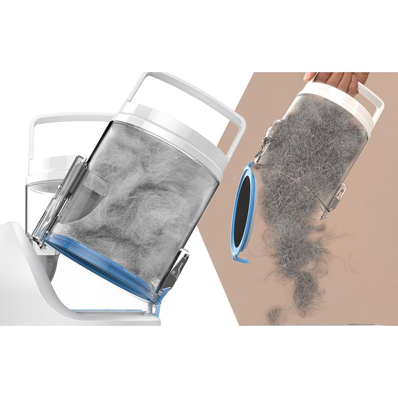 - Recipiente grande de 1 litro: Recolhe o pelo para várias sessões de escovagem sem esvaziamento frequente, mantendo a sua casa arrumada.